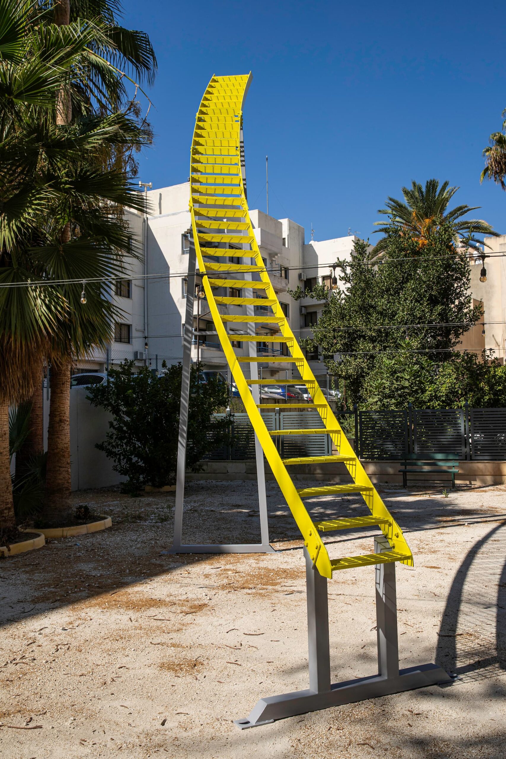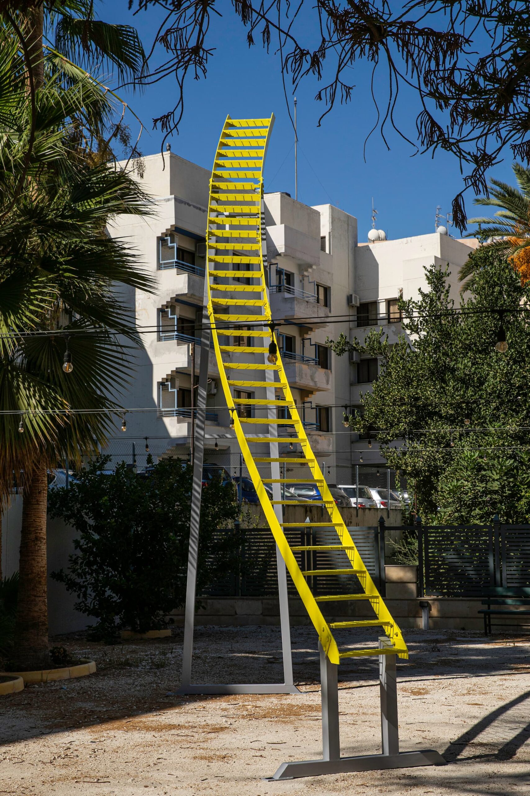 At its core, Skala² is a site-specific installation and video work that reanimates decommissioned oil tank ladders — remnants of Skala’s erstwhile industrial lifeworld — as sculptural conduits of ascent, memory, and futurity. These ladders, once utilitarian structures of ascent and descent, are re-configured as visual and phenomenological prompts that connect corporeal movement with architectural form, fracturing habitual perceptions of industrial detritus and inviting new ways of seeing and feeling place.